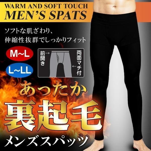 > メンズスパッツ 3枚セット 裏起毛 紳士用タイツ L~LL 前開き ストレッチ素材 防寒 保温 送料無料- 60N◇ メンズスパッツ:L~LL×3枚