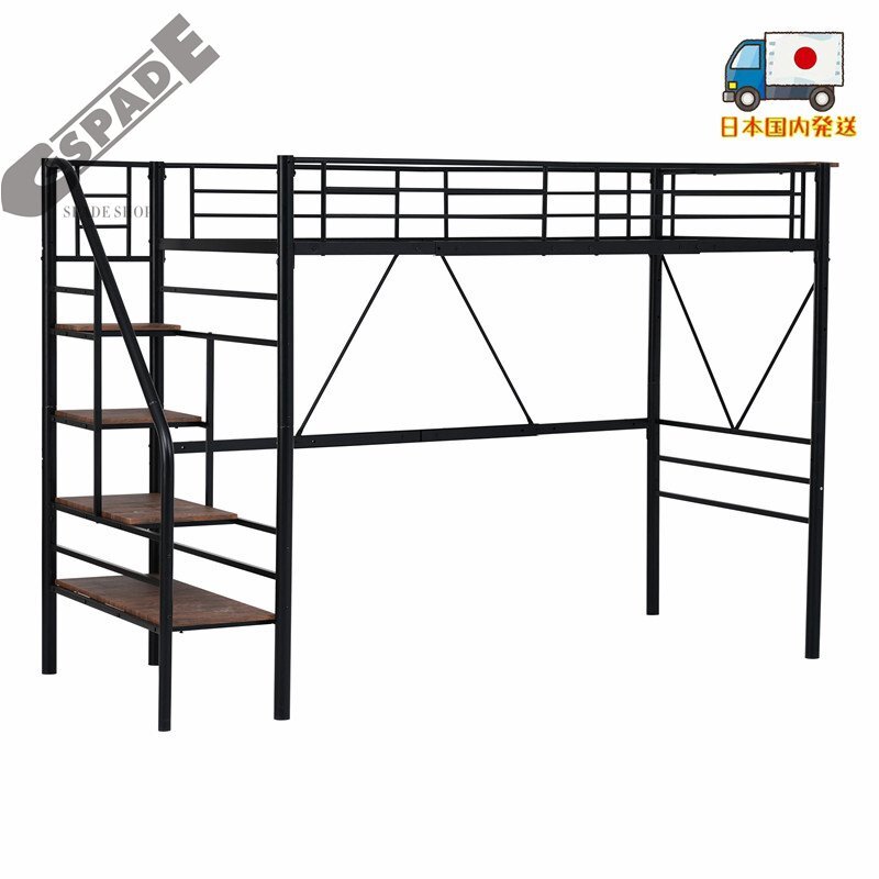 - 【国内発送】S ロフトベッド 階段付き S パイプベッド シングル コンセント付き 収納 スチール 耐震 ベッド シングル パイプベッド