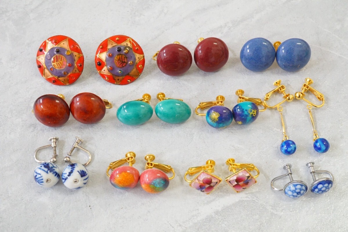 - C786 陶器 焼き物など ヴィンテージ イヤリング 11点 アクセサリー 両耳揃い アンティーク 大量 セット まとめて おまとめ まとめ売り
