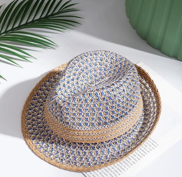 - 新入荷高級 天然わら 編み込みブルー ナチュラル ストローハット ミックスカラー 57cm-60cm 涼しい イタリア 麦わら帽子 大きいサイズ