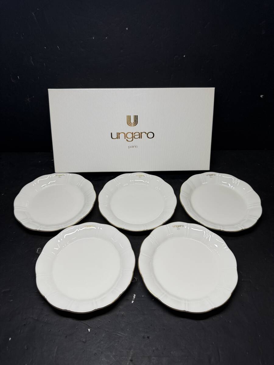 > ★コレクター必見 未使用 ungaro ウンガロ デミケーキセット 小皿 5枚 洋食器 デザート皿 白 金彩 シンプル コレクション Se61