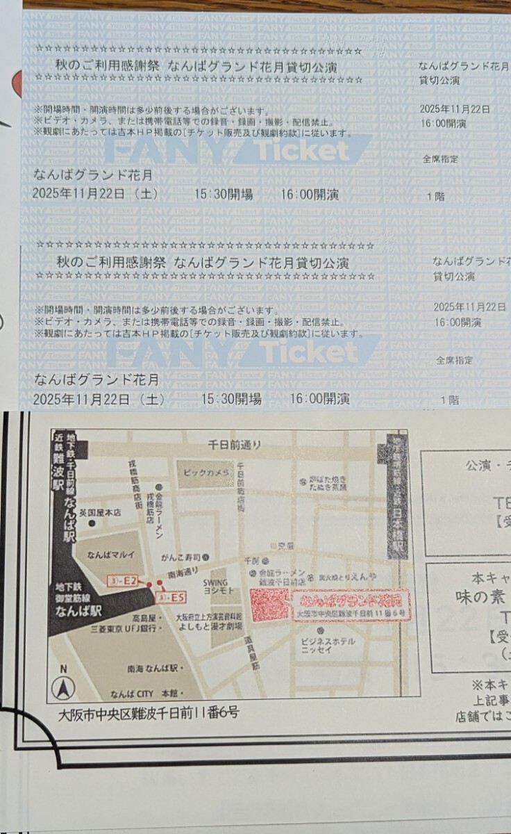 - 11/22 なんばグランド花月 吉本新喜劇 チケット 貸切