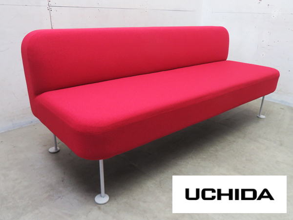 > ■P323■美品■UCHIDA/内田洋行■ピルヴィオ2/pilvio2■3人掛けソファ/3psofa/3シーター■レッド/赤■モダン■
