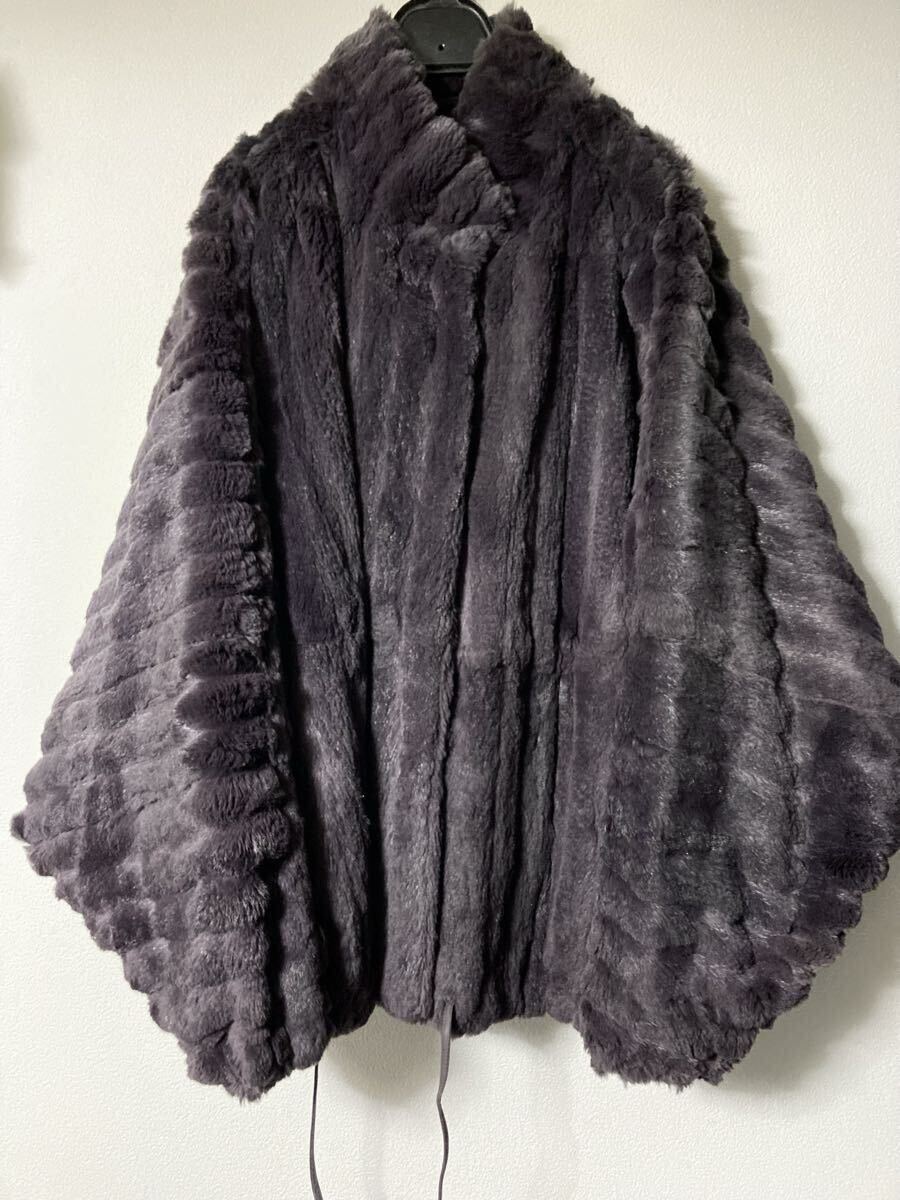 - EMBA オールド ミンク シアリングジャケット ムートン チャコール 紫 オーバーサイズ ドルマン ホックボタン ポケット付き 毛皮 コード