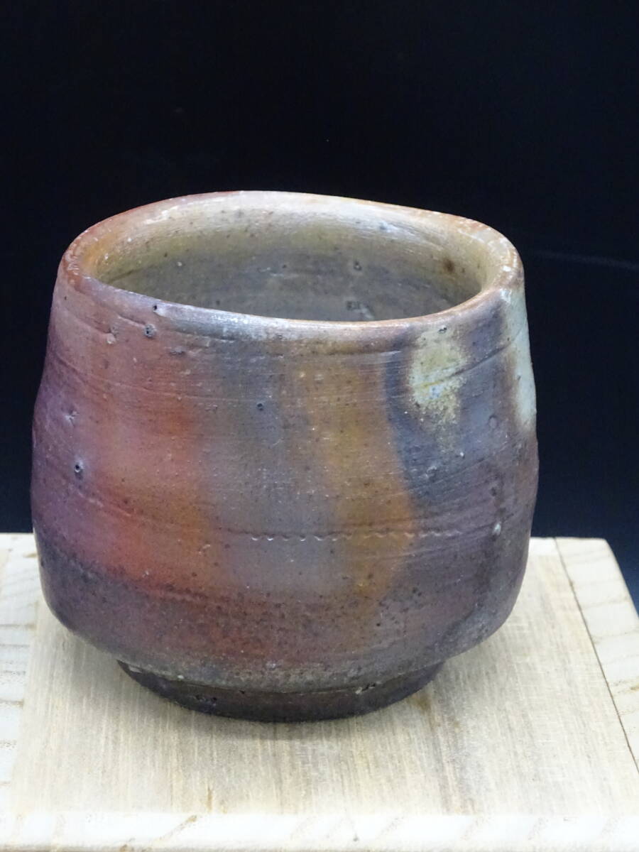 - 備前焼 人気実力作家 髙原敏 工芸会正会員 伝統工芸士 ★備前窯変ぐいのみ 共箱、共布、陶歴付 酒器 茶碗 壺 茶道具