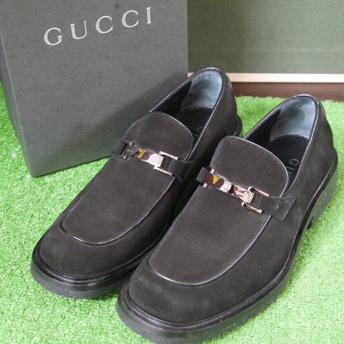 > ★USED品 GUCCI【グッチ 110 1483 E 40・1/2 ローファー スェード ブラック(黒) Gプレート シューズ】