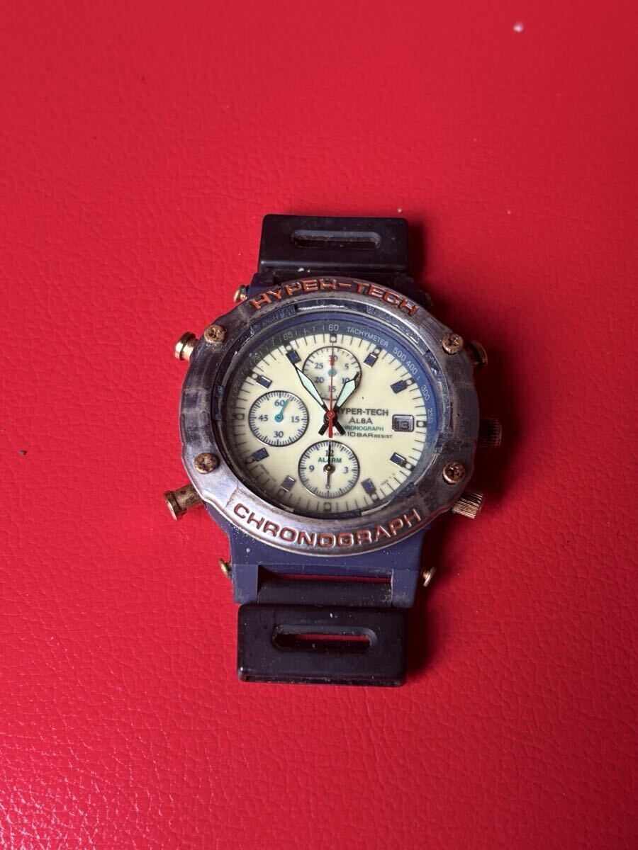 - SEIKO/セイコー ALBA/アルバ ハイパーテック クロノグラフ Y182-7A30 未チェックのジャンク扱い ベゼル破損 ①