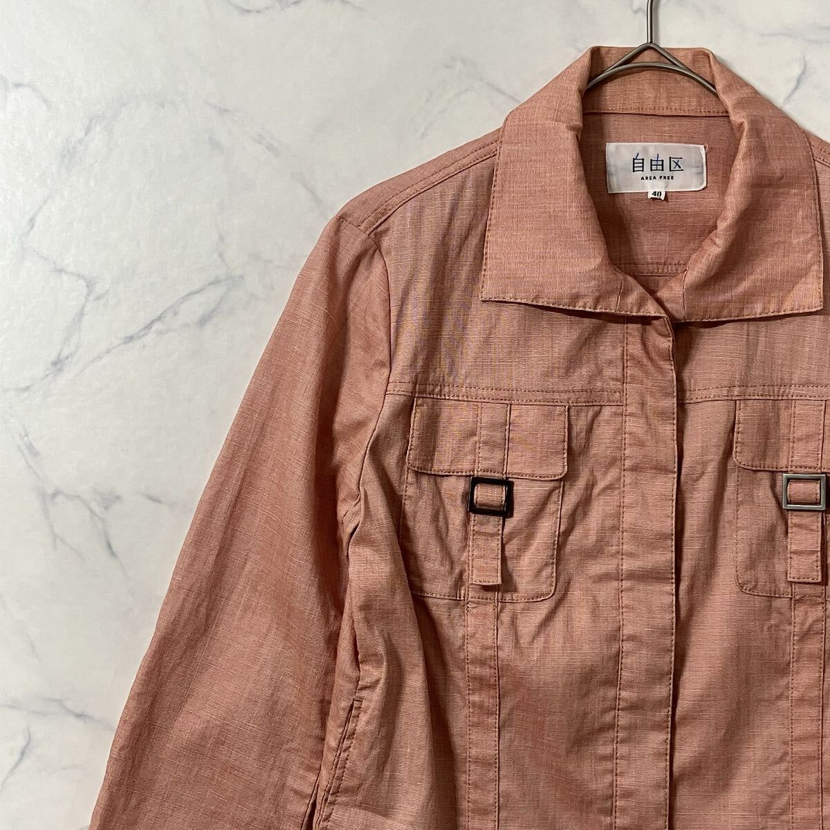 - 自由区 ジユウク 大きめ ダブル ポケット フライフロント 薄手 麻混 ジャケット オレンジ 40