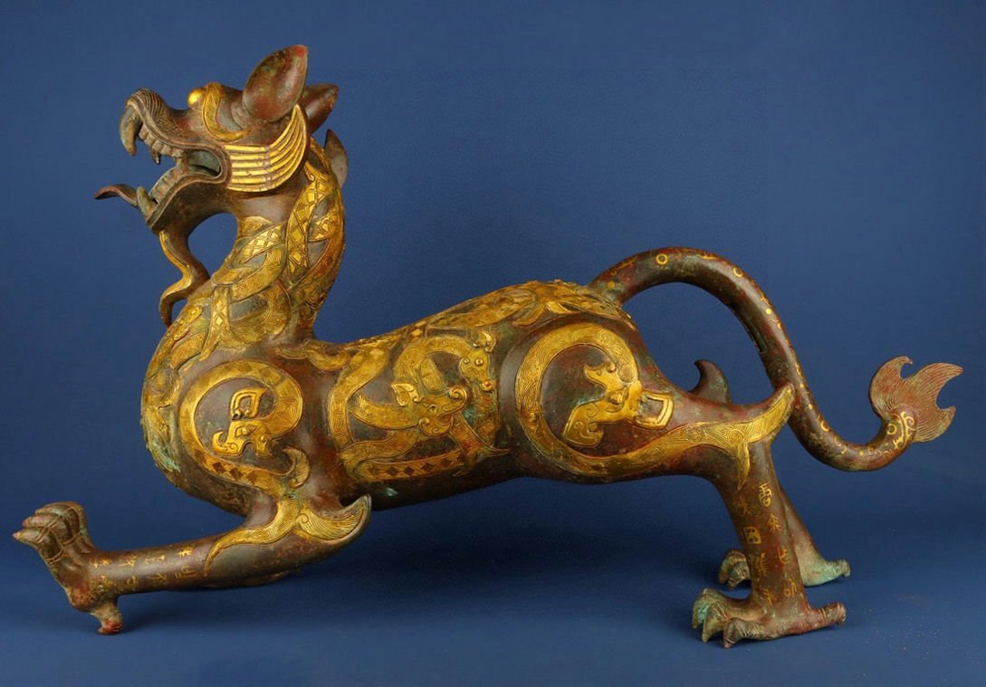 - ◆羽彰・古美術◆Y7949漢代 青銅器 青銅錯金獣尊 細密細工★古置物★古賞物★古擺件★蒐集家放出★唐物