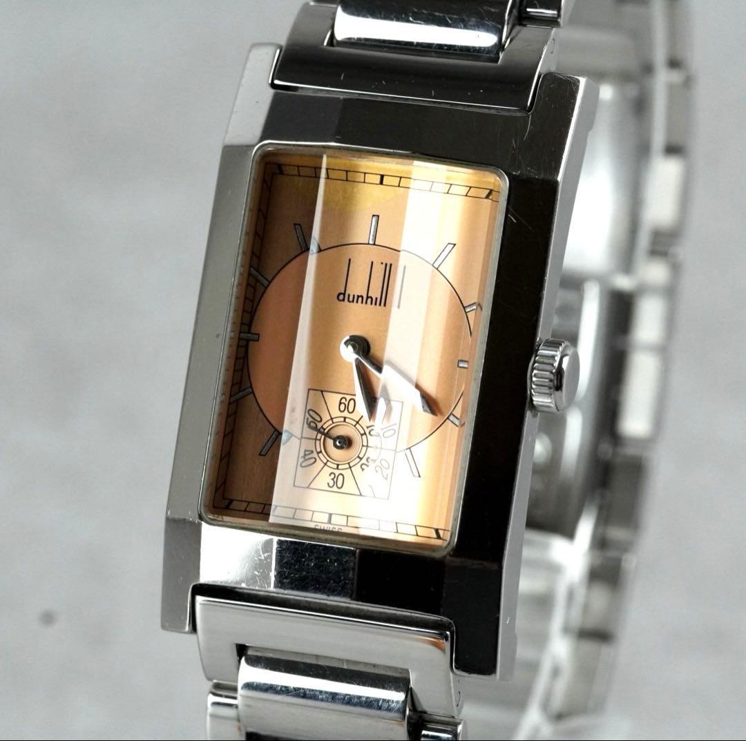 - 1円 スタート dunhill ダンヒル ダンヒリオン カットガラス スモセコ メンズ 腕時計 クォーツ 稼働品 vintage men's wacth 1スタ