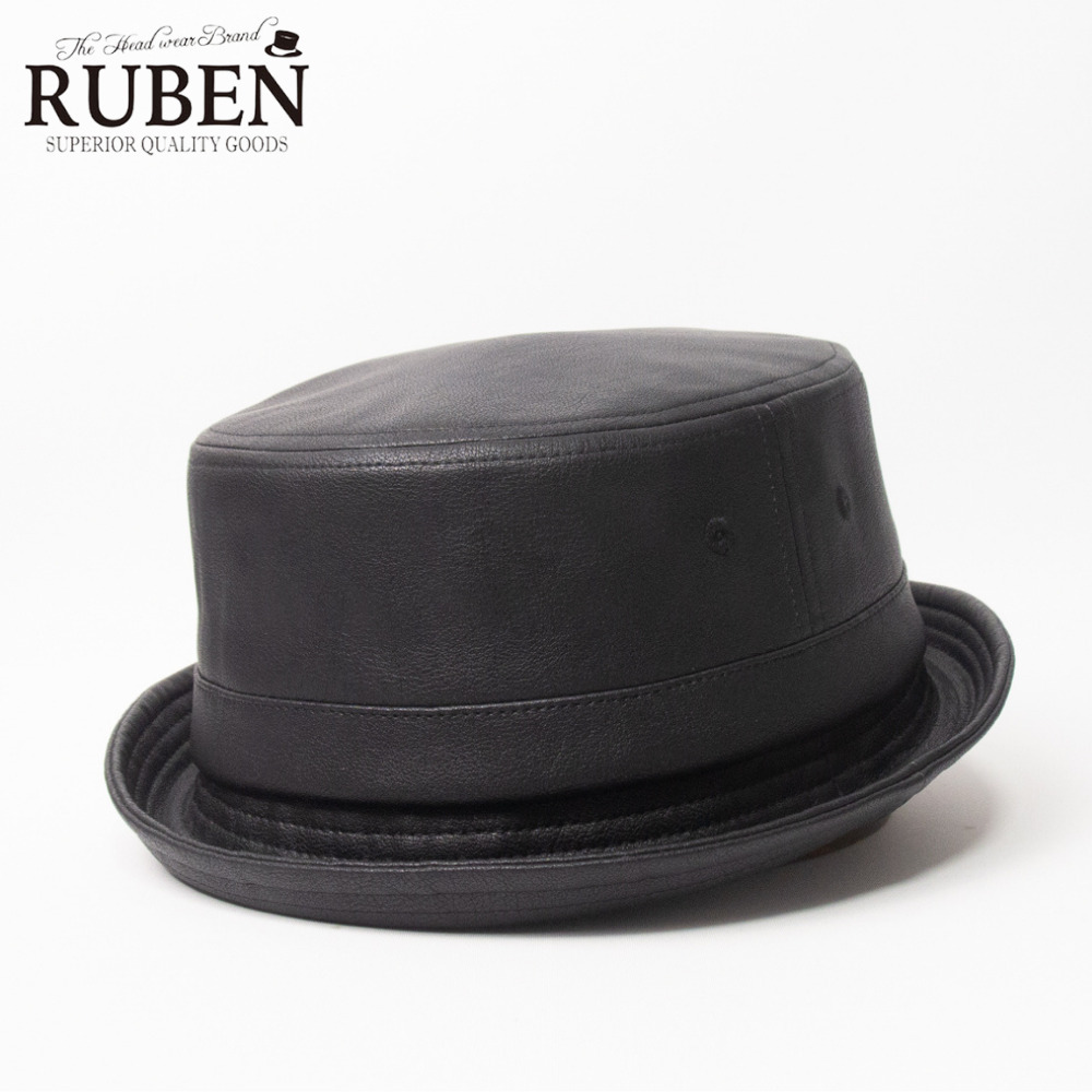 - 新品 RUBEN エコレザー ポークパイハット フリーサイズ ブラック