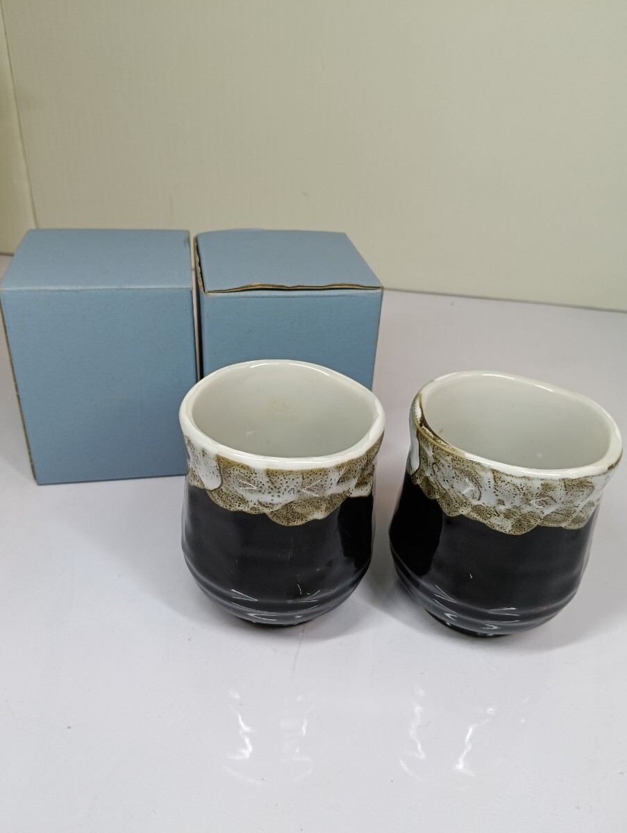 - 【1円スタート】湯呑み まとめ 陶器製 和食器 黒と白の釉薬が美しいデザイン 箱付き 茶器 お茶道具 中古品 セット 60サイズ