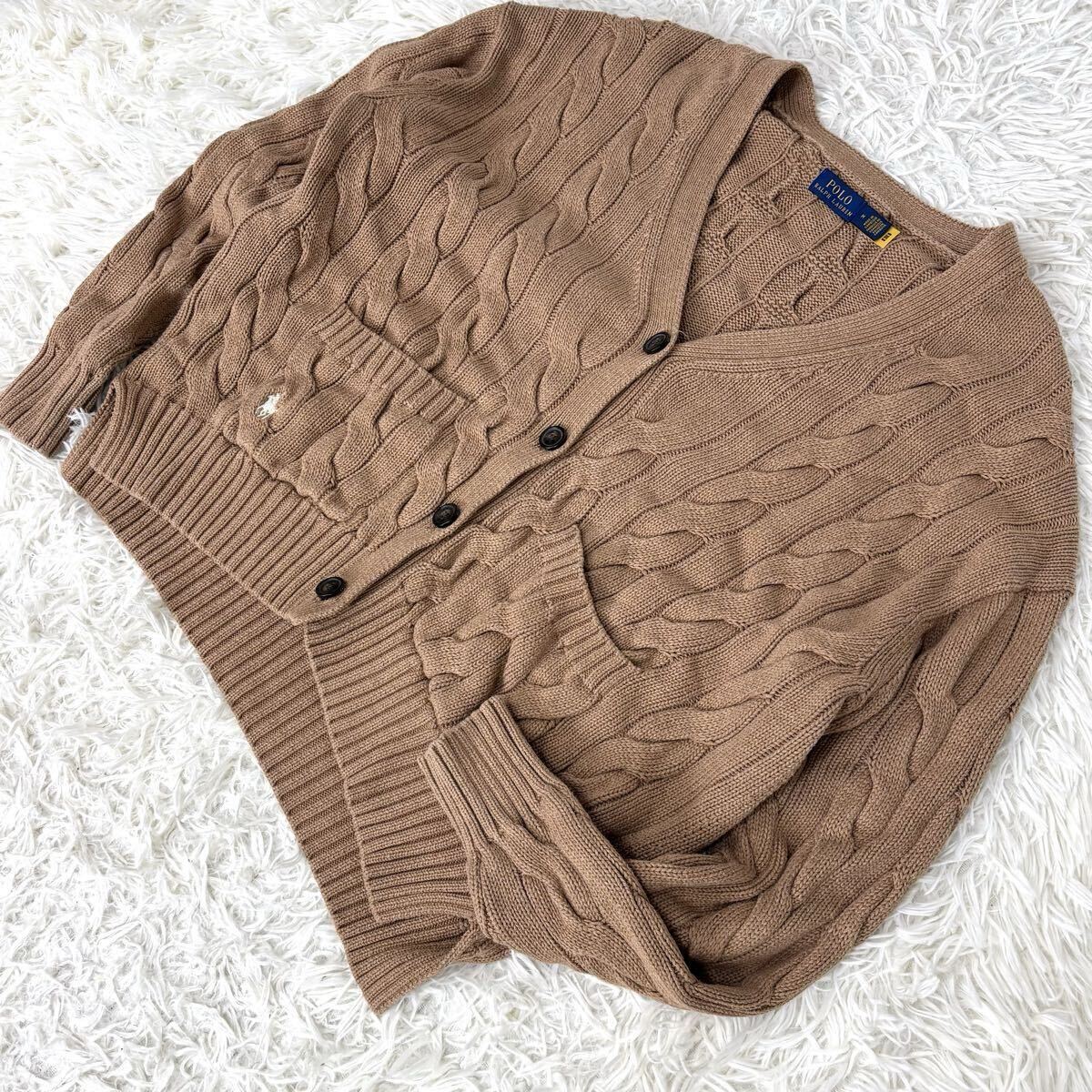 - 『近年アイテム!』POLO RALPH LAUREN ラルフローレン ケーブル編み オーバサイズ コットン ニットカーディガン M 裾ポニー 短丈