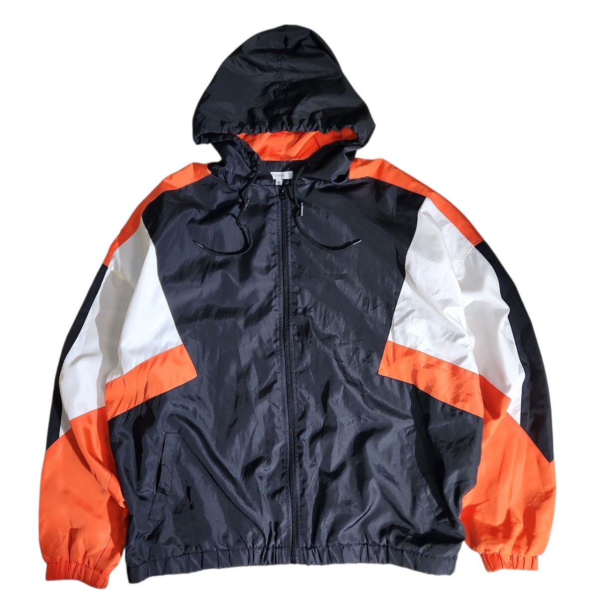 > Nylaus オーバーサイズ フード付き ウインドブレーカー ジップアップ 黒オレンジ白 パーカー ドロップショルダー 84963