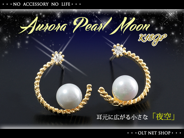 - 新品/ピアス/K18GP/パール/ダイヤ/イエローゴールド/18金/真珠/レディース/両耳/スタッド/月/ムーン/星/シンプル/上品/女性/CZ/YG