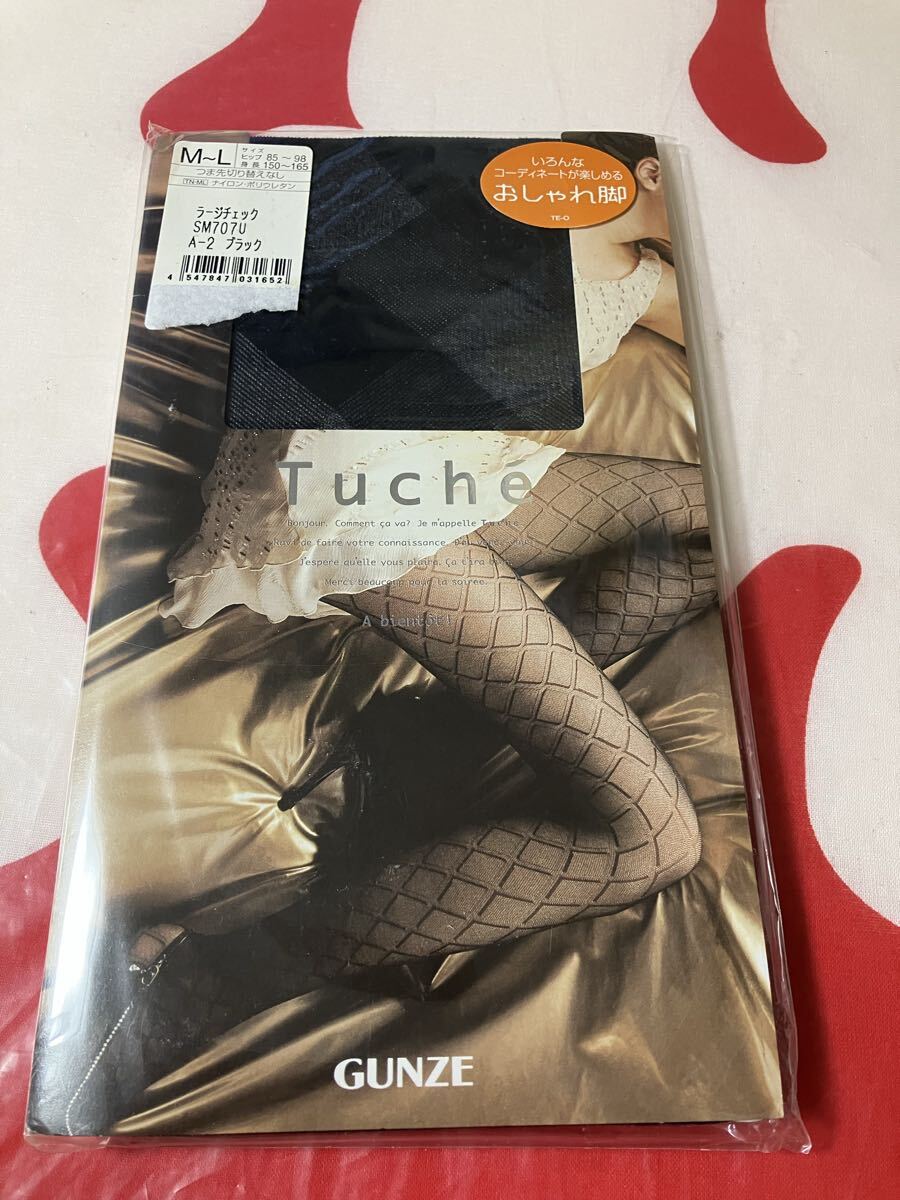 > gunze tuche ラージチェック ブラックパンティストッキング グンゼ パンスト 柄 デザイン panty stocking トゥシェ 模様 黒