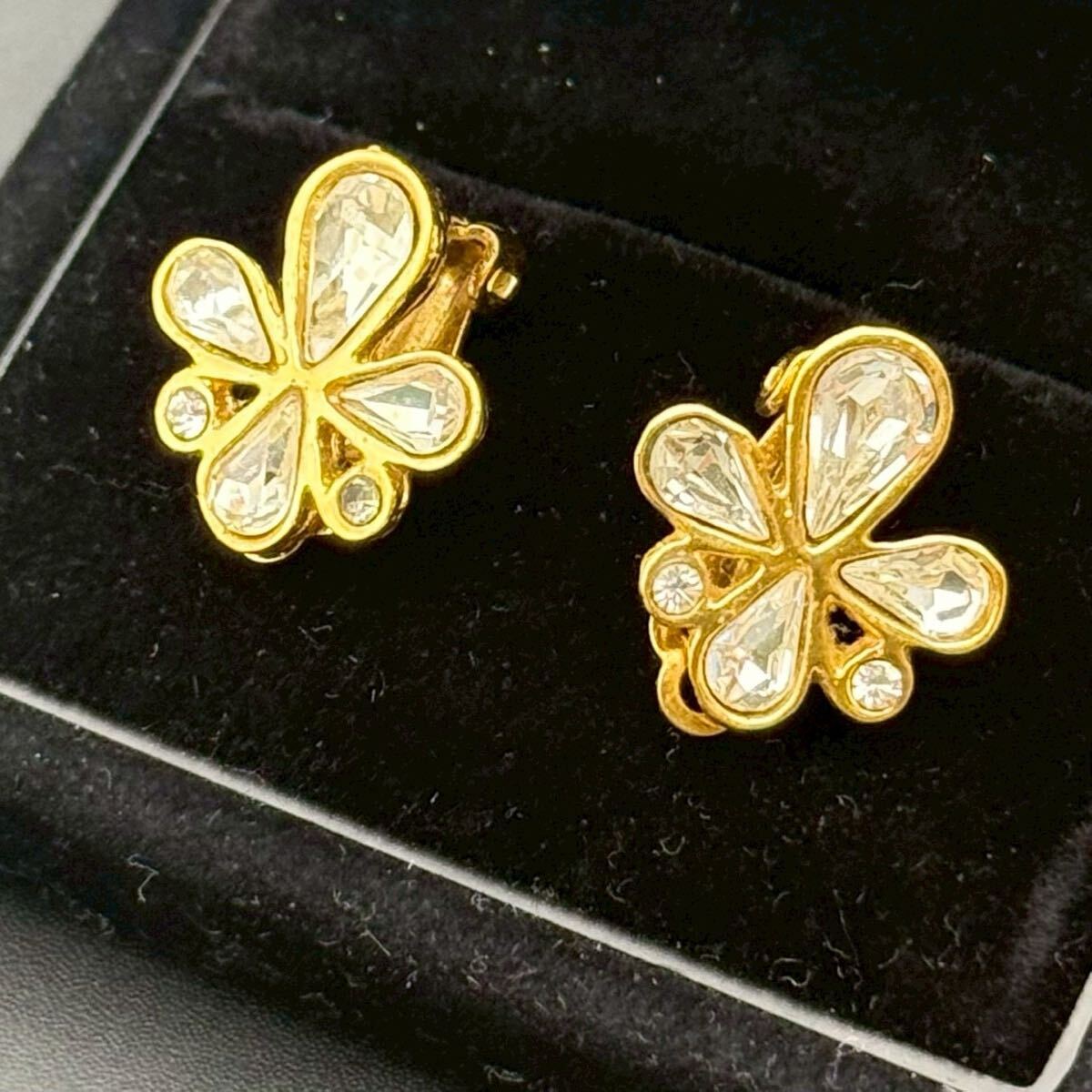 > 【希少・極美品】Yves Saint Laurent イヴサンローラン YSL イヤリング 花 フラワー ゴールド カラーストーン コスチュームジュエリー