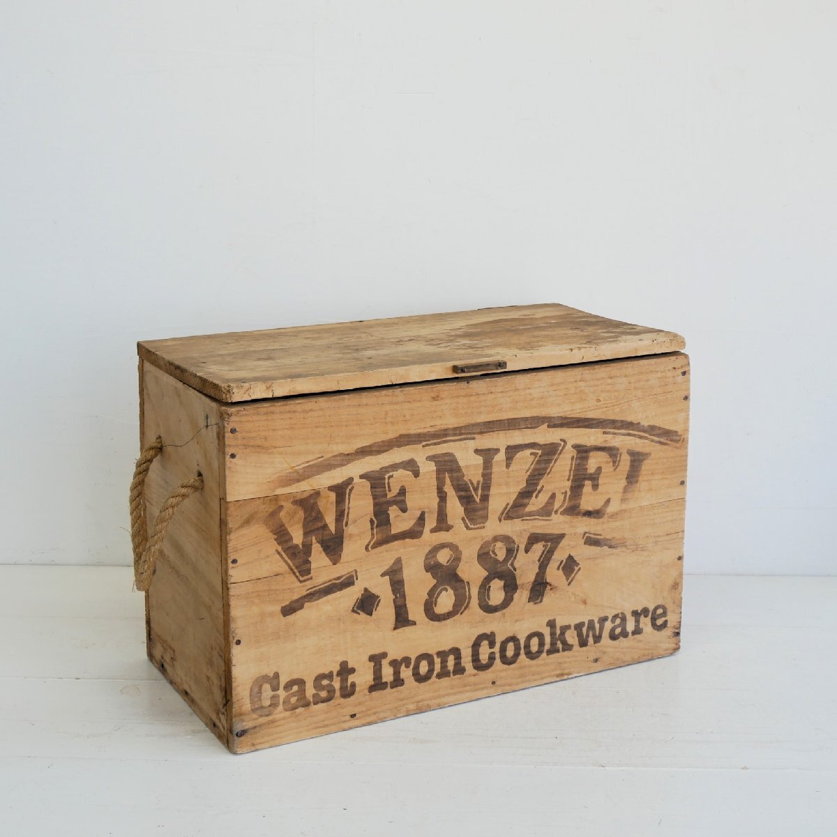 > WENZEL ヴィンテージ ふた付き木箱 / アメリカ キャンプ用調理器具 アウトドアスタイル 収納箱 店舗什器 #702-20-379-332
