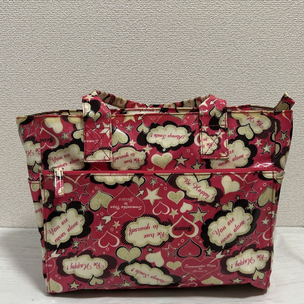 > Samantha Vega by Jessica サマンサヴェガ ベガ レディース トートバッグ マザーズバッグ 総柄 ハート ピンク ビニール 撥水 大容量 軽量