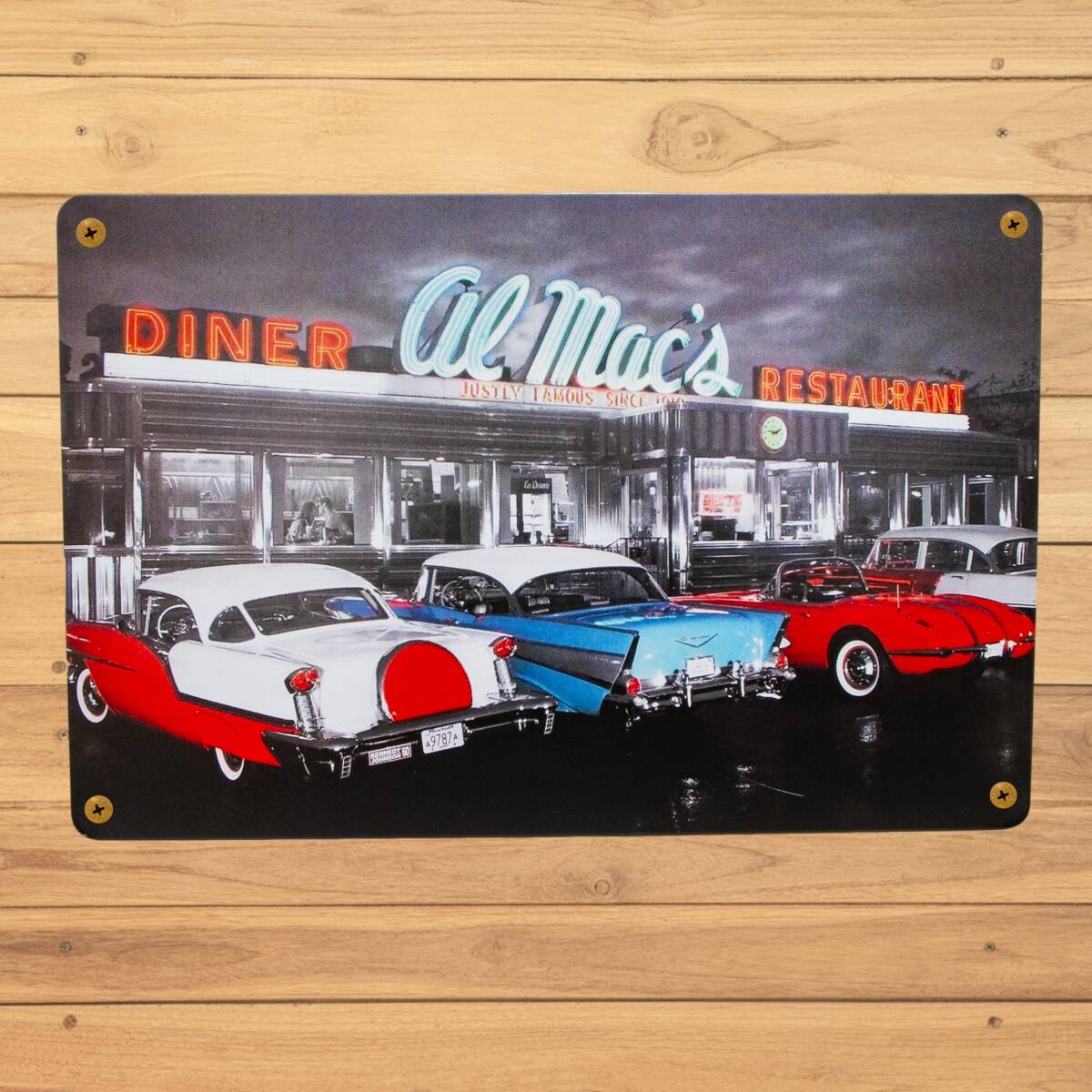 - アメ車とダイナー・アメリカンレトロのブリキ看板 ややキズや反りが有ります 未使用品