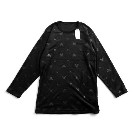 - 新品 disney ベロア 長袖 丸首 シャツ 黒 メンズ L 紳士 ディズニー ミッキー ロンT 長袖Tシャツ