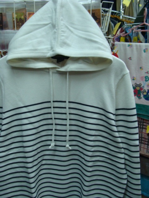 > 【未使用品】Brooks Brothers ブルックスブラザーズ フードパーカー 白地ボーダー (L)