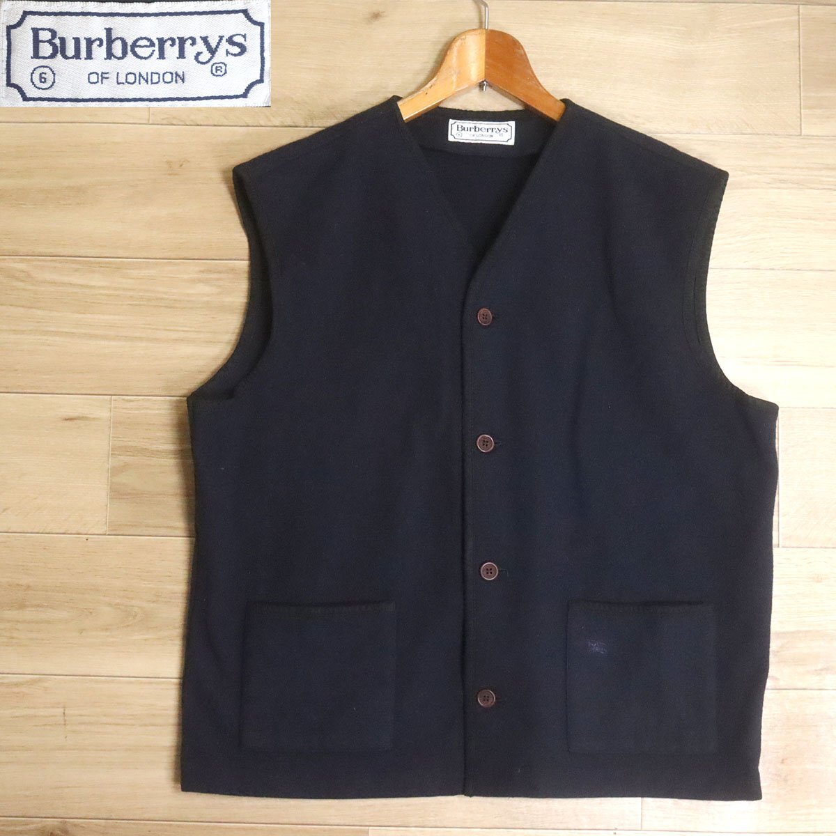 - B3S/R4.9-10 Burberrys OF LONDON バーバリー オブ ロンドン ウール混紡 ボタン付きベスト ジレ ロゴ刺繍 メンズ ネイビー 古着