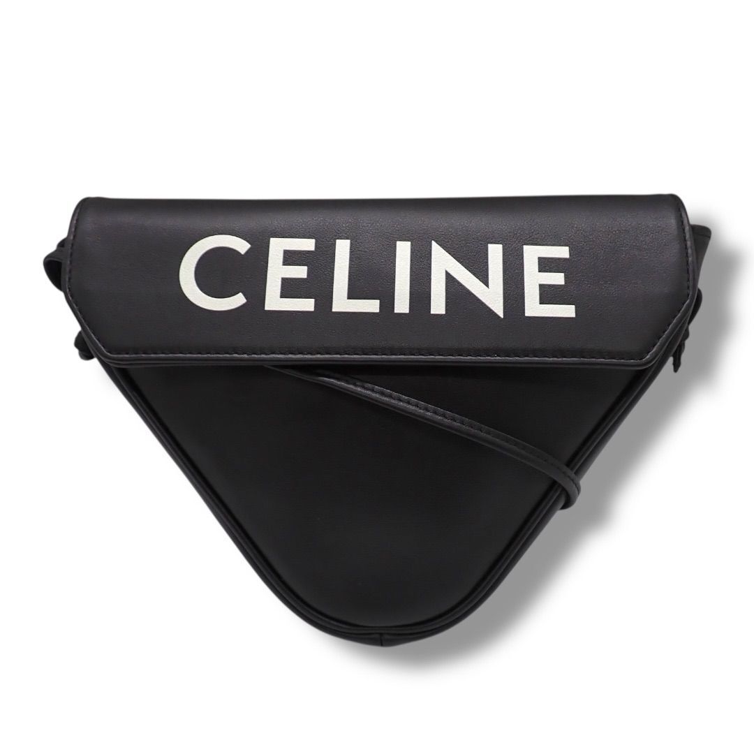 > セリーヌ CELINE トライアングル レザー ショルダーバッグ ロゴ ブラック メンズ レディース ユニセックス 4399