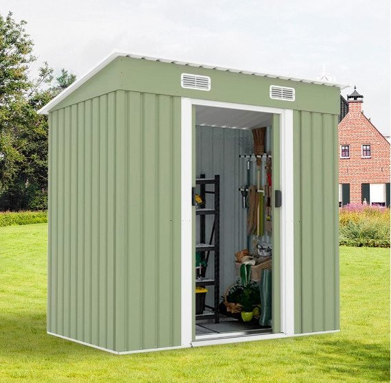 - 迅速配送・物置 屋外 大容量倉庫 戸外収納庫 防水/耐侯 収納可能 ガーデン/庭/田畑/農場 頑丈 スチール引き戸 補強フレーム付き 換気口付