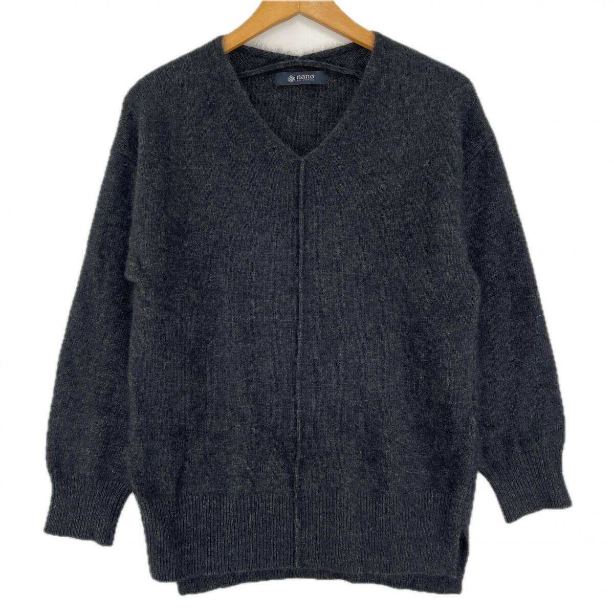 - nano universe ナノユニバース Vネック ニット sizeF/チャコールグレー