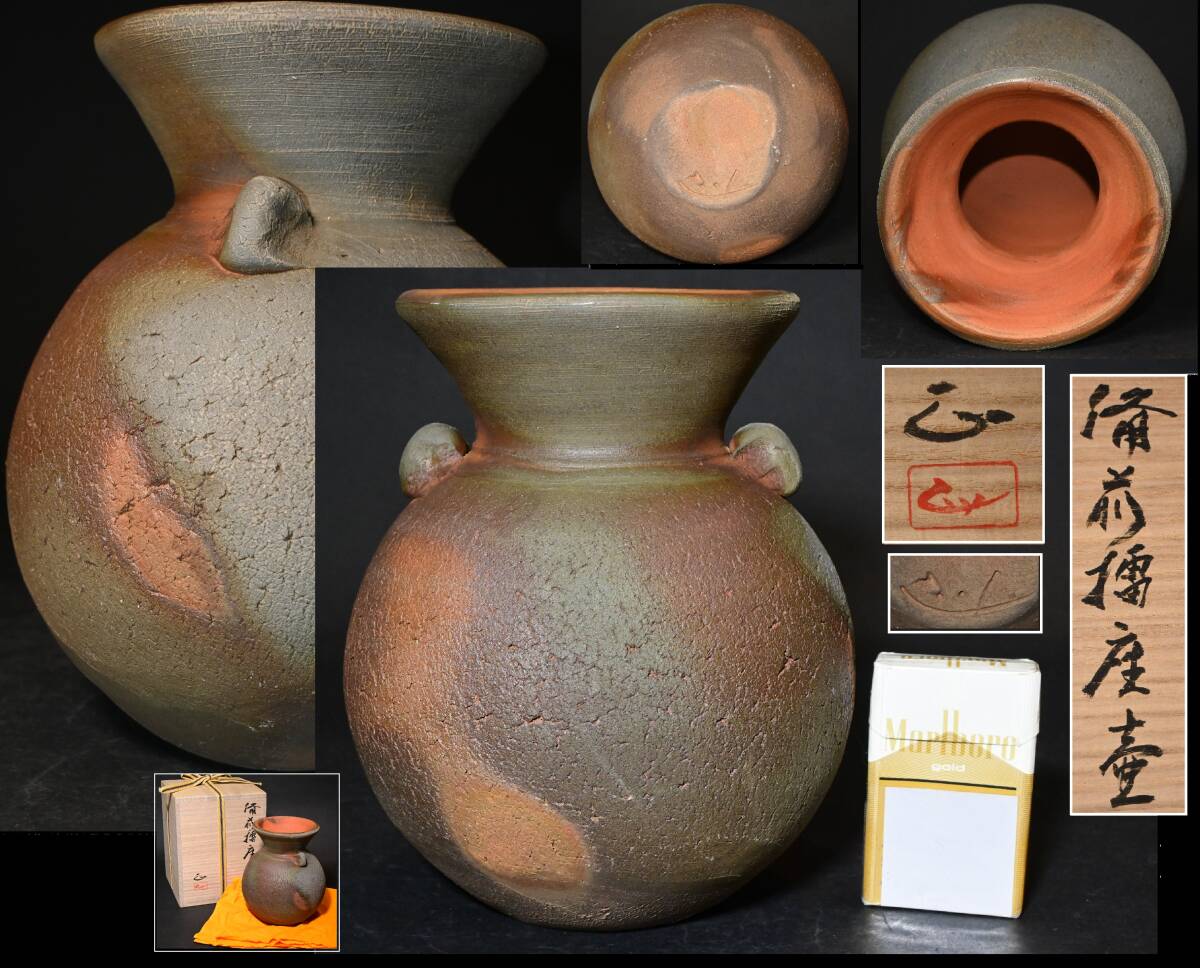> 真贋保証■吉本正 作■ 備前擂座壷 共箱・共布 窯変 耳付壷 師は人間国宝 藤原啓 備前市閑谷生 茶道具 花器 花瓶 飾壷 壺