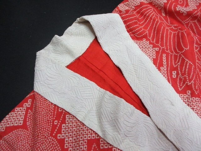 - 1円 中古 長襦袢 正絹 式典 和装 和服 アンティーク 紅絹 鶴 袷 お洒落 身丈113cm 裄63cm【夢職】★