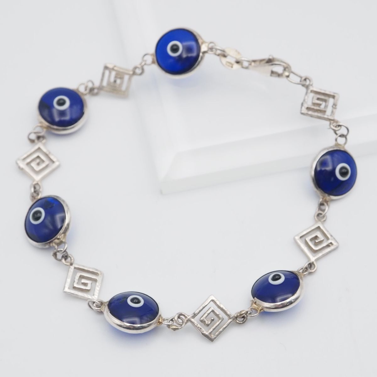 - H471 ブルーガラス 925刻印 ブレスレット デザイン シルバー ヴィンテージ
