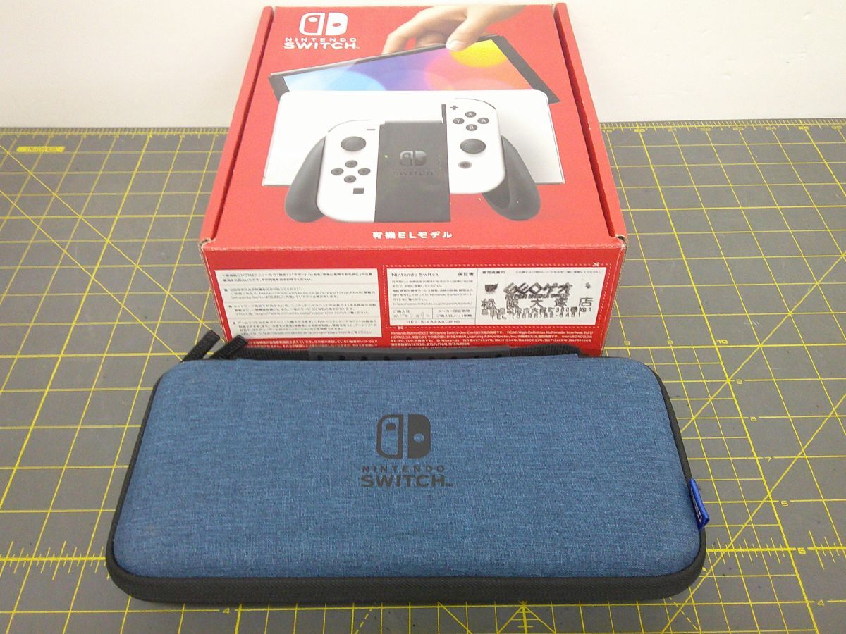 - 25 送80サ 1110YB23 ニンテンドースイッチ 有機EL ホワイト ver20.5.0 + ポーチセット たばこ臭あり 中古品