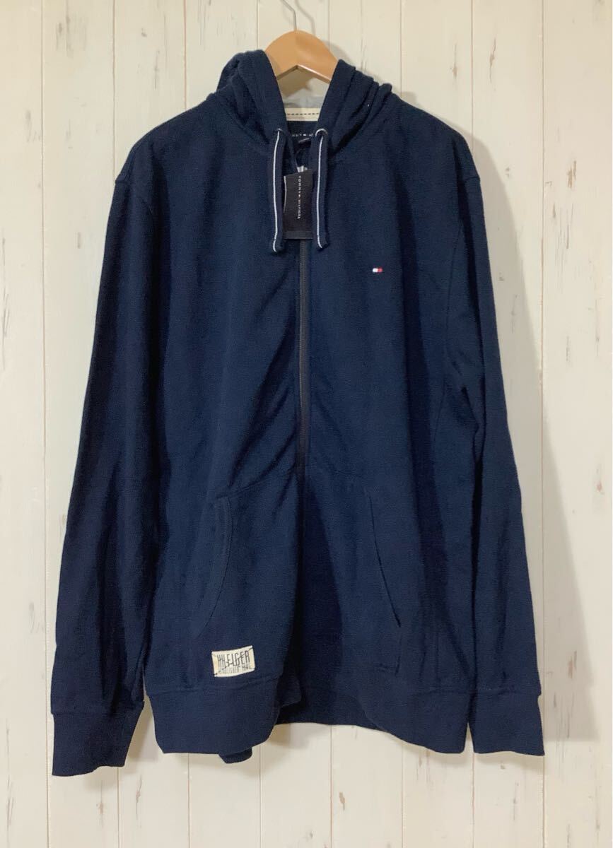 - て1760 タグ付き TOMMY HILFIGER トミーヒルフィガー ジップアップスウェットパーカー XL ネイビー 裏起毛