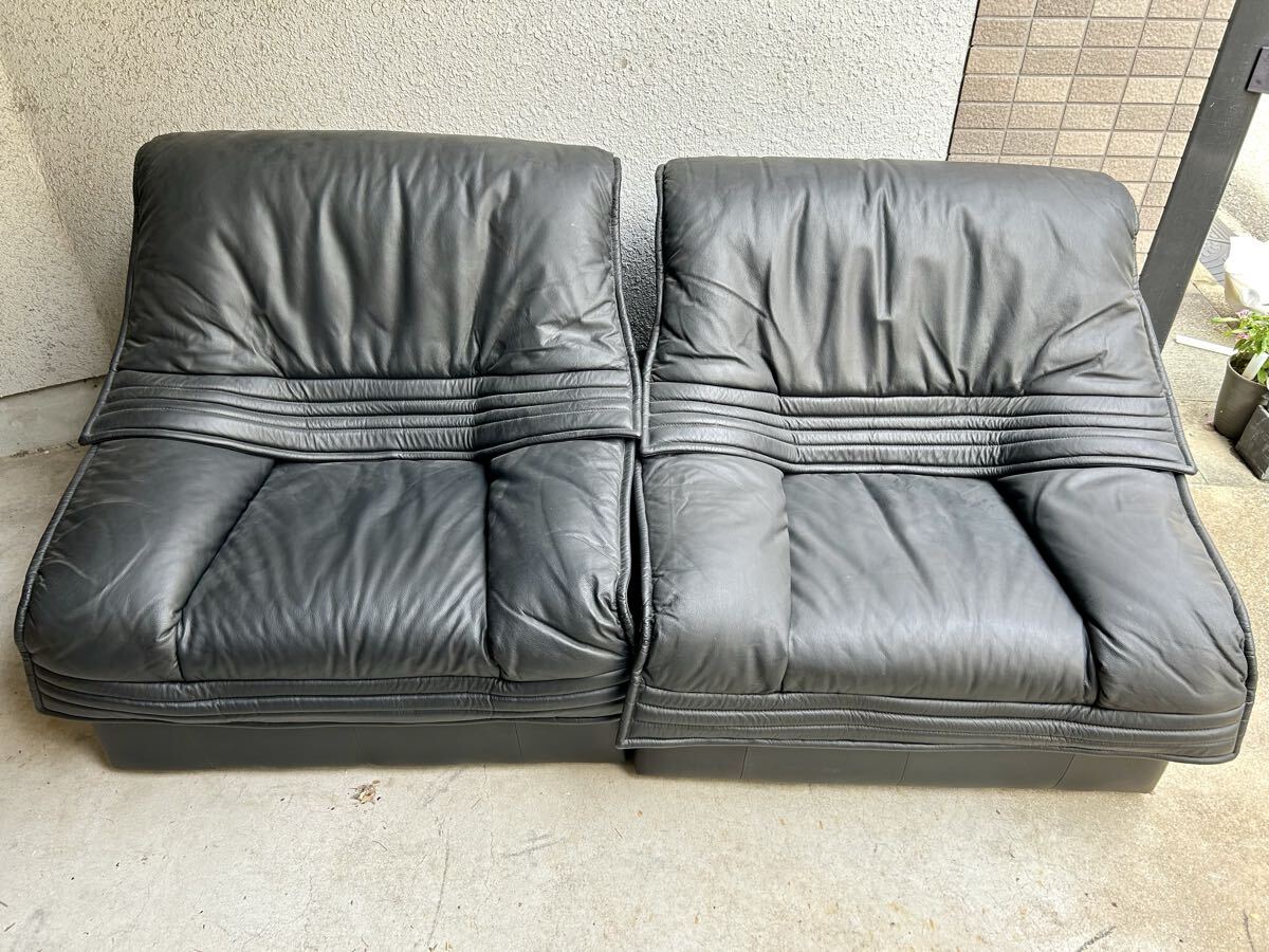 - イタリア製 CONCERIA AGO S.p.A 本革ソファ 2人掛け ブラック 幅90cm 高級イタリアンレザー 家具 インテリア