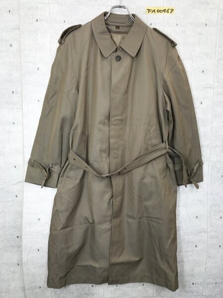 - メンズ 日本製 ライナー付き 比翼ボタン ステンカラーコート ベルト付き 100-6 カーキ