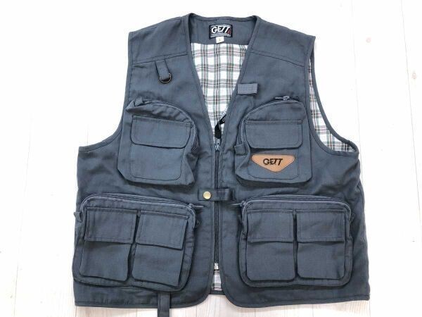 - ゲット GETT レトロ オールド アメカジ アウトドア レジャー 釣り フィッシング ワーク ベスト メンズ コットン混合 L グレー