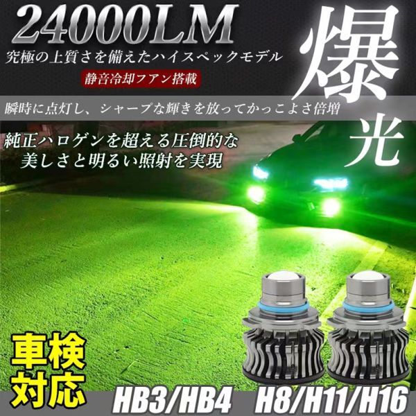 - LED フォグランプ 24000LM グリーンレモン グリーンイエロー H8/H11/H16/HB4 車検対応 アルファード ヴェルファイア プリウス 2個 LF-040