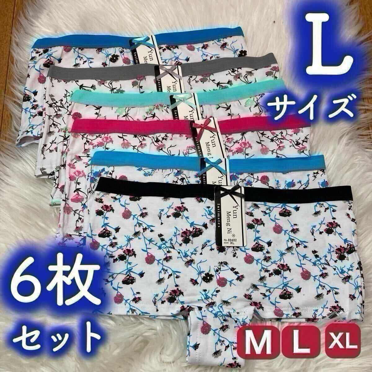 - 6枚セット ボクサーパンツ レディース L コットン 綿 下着 ショーツ グレー 灰色 グリーン 緑 ピンク ブルー 青 ブラック 黒 まとめ売り