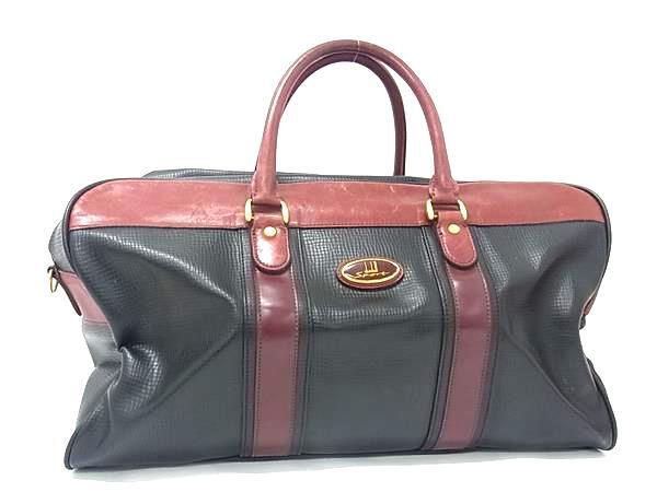 > 1円 dunhill ダンヒル レザー ボストンバッグ トラベルバッグ 旅行かばん メンズ ブラック系×ボルドー系 GA5787