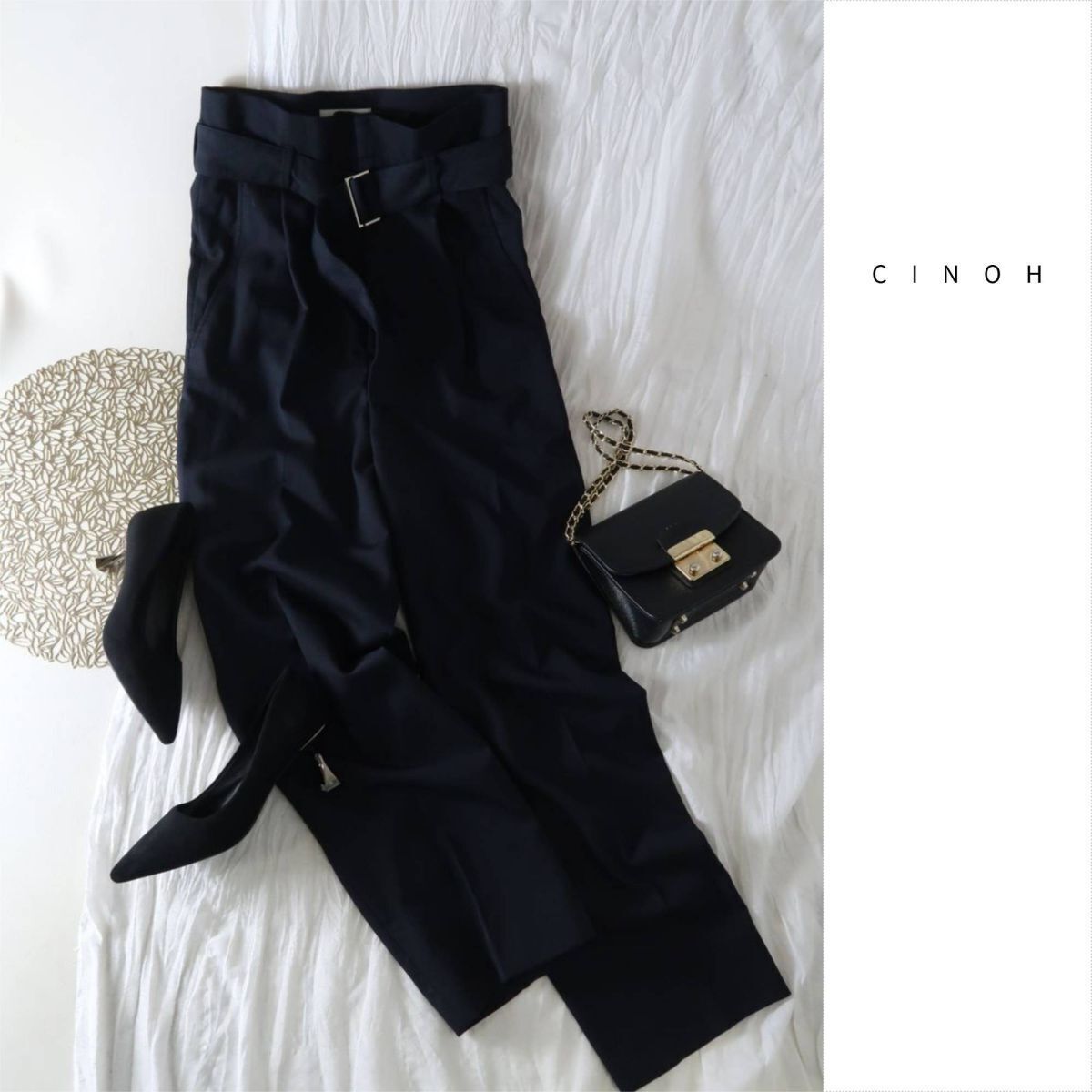 > 3.7万☆チノ CINOH☆ウール ベルト付き ハイウエストパンツ 38サイズ 日本製☆M-B 6113