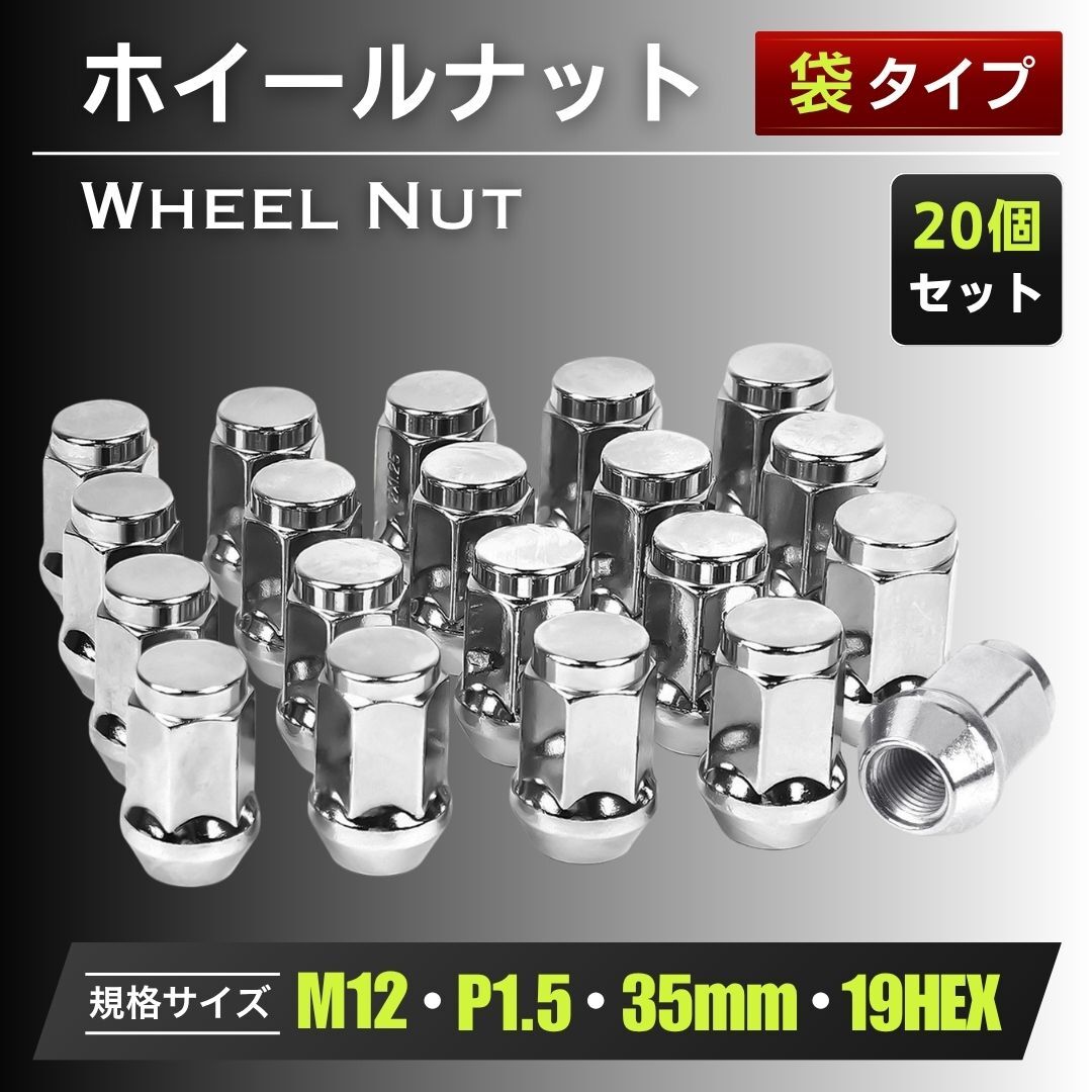 > ホイールナット M12 P1.5 35mm 19HEX 袋ナット スチール クロム 20個 トヨタ マツダ ホンダ ダイハツ ミツビシ ボルト テーパー