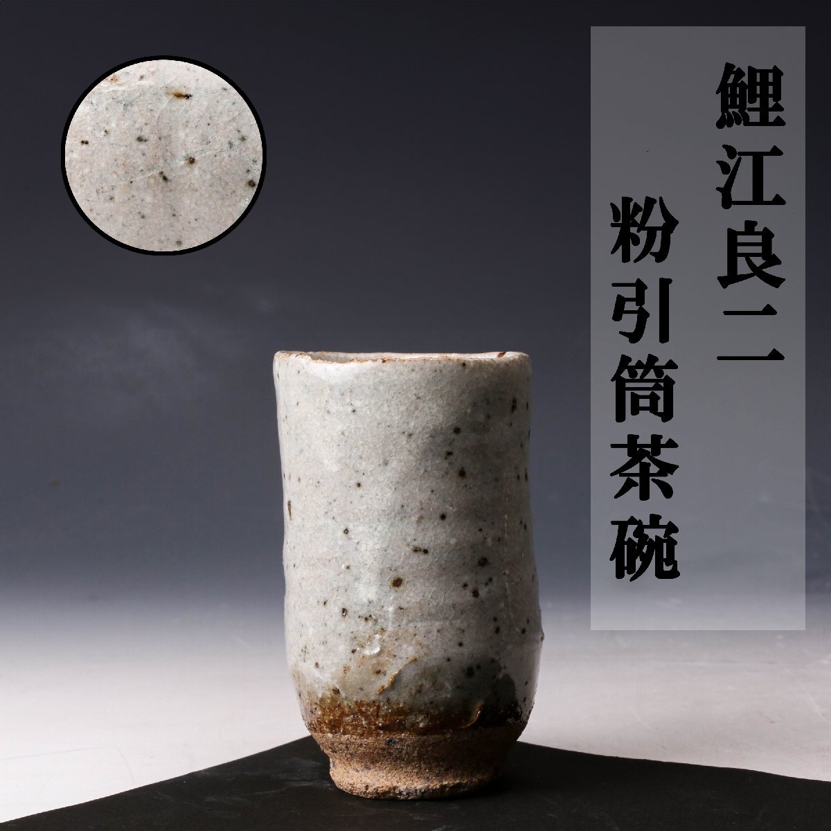 【佳香】鯉江良二 粉引に脈打つ鉄の鼓動 粉引筒茶碗 本物保証