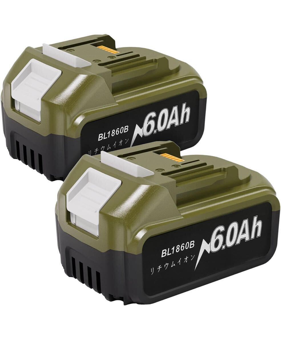 - 【2個セット】18v バッテリー BL1860B 6.0Ah マキタ互換バッテリー18v 6000mAh大容量 LED残量表示 電動工具リチウムイオンバッテリー