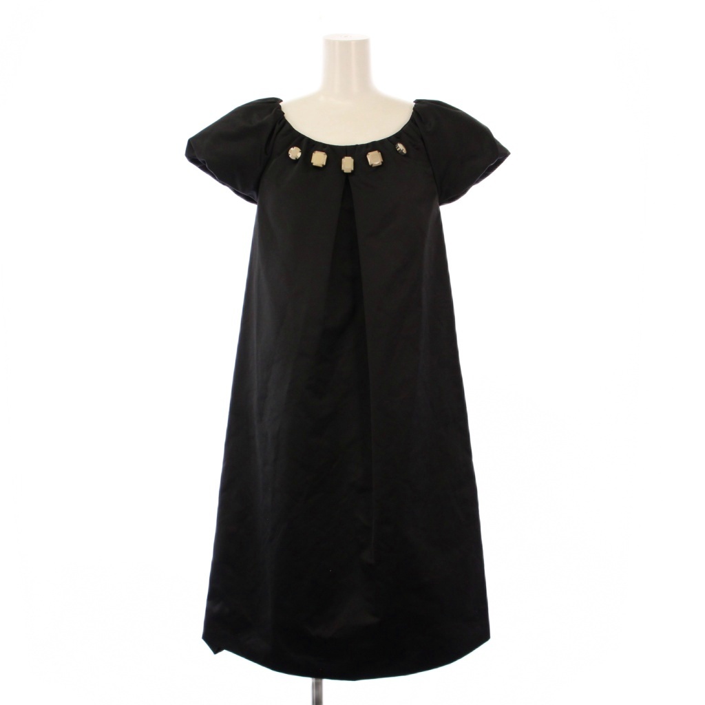 - マックスマーラ MAX MARA フレアワンピース ひざ丈 半袖 Uネック ビジュー 装飾 38 黒 ブラック /BB レディース