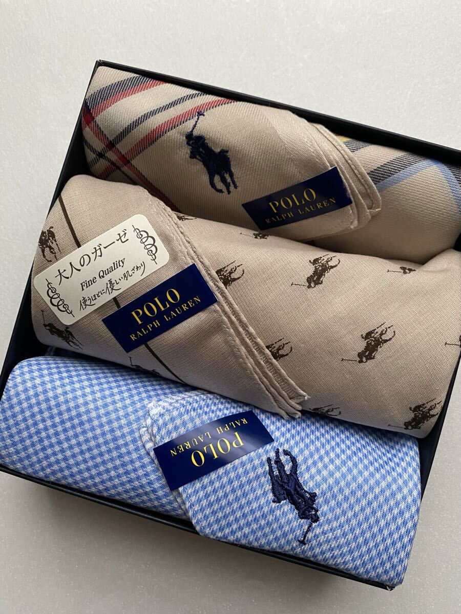 - 新品未使用◆POLO Ralph Lauren ポロラルフローレン ハンカチ 3枚セット メンズ ギンガム ポニー柄 チェック柄 ガーゼハンカチ