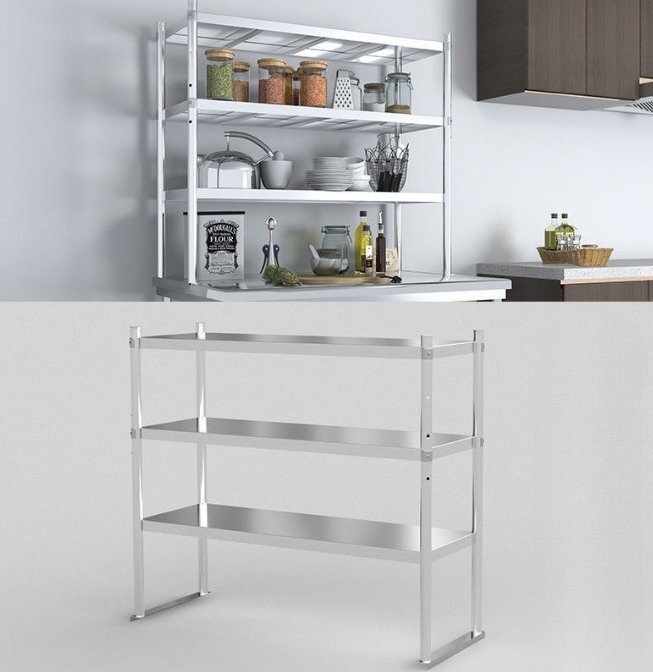 - 新入荷★実用★ステンレス製のキッチンラックを厚くした3段の床置き収納棚電子レンジオーブン家庭用収納棚