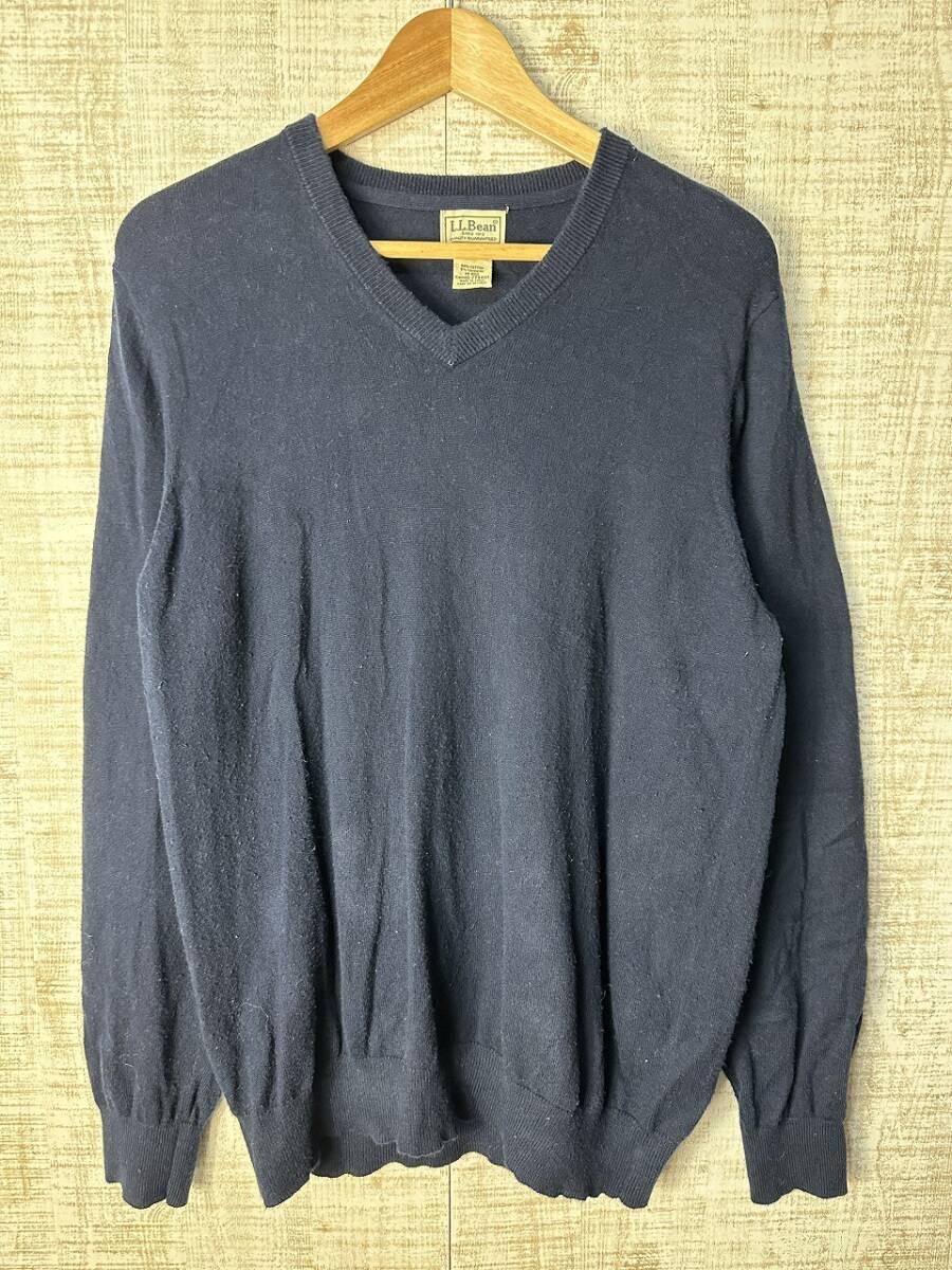 > ☆US古着 L.L.Bean エルエルビーン 90s 90年代 ニット セーター コットン カシミア Vネック ハイゲージ ネイビー紺【M】 ◆5359◆