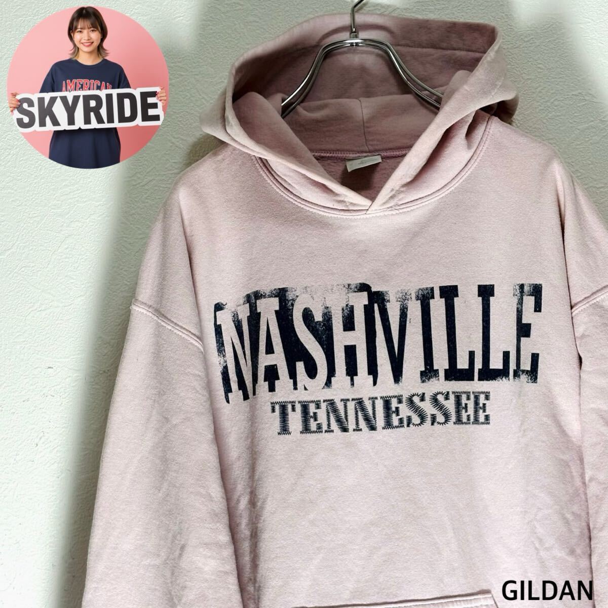 - Y2K GILDAN ギルダン 2010s パーカー カレッジロゴ ナッシュビル テネシー ピンク M 裏起毛 ビッグシルエット ストリート 通年着用 #SB0255